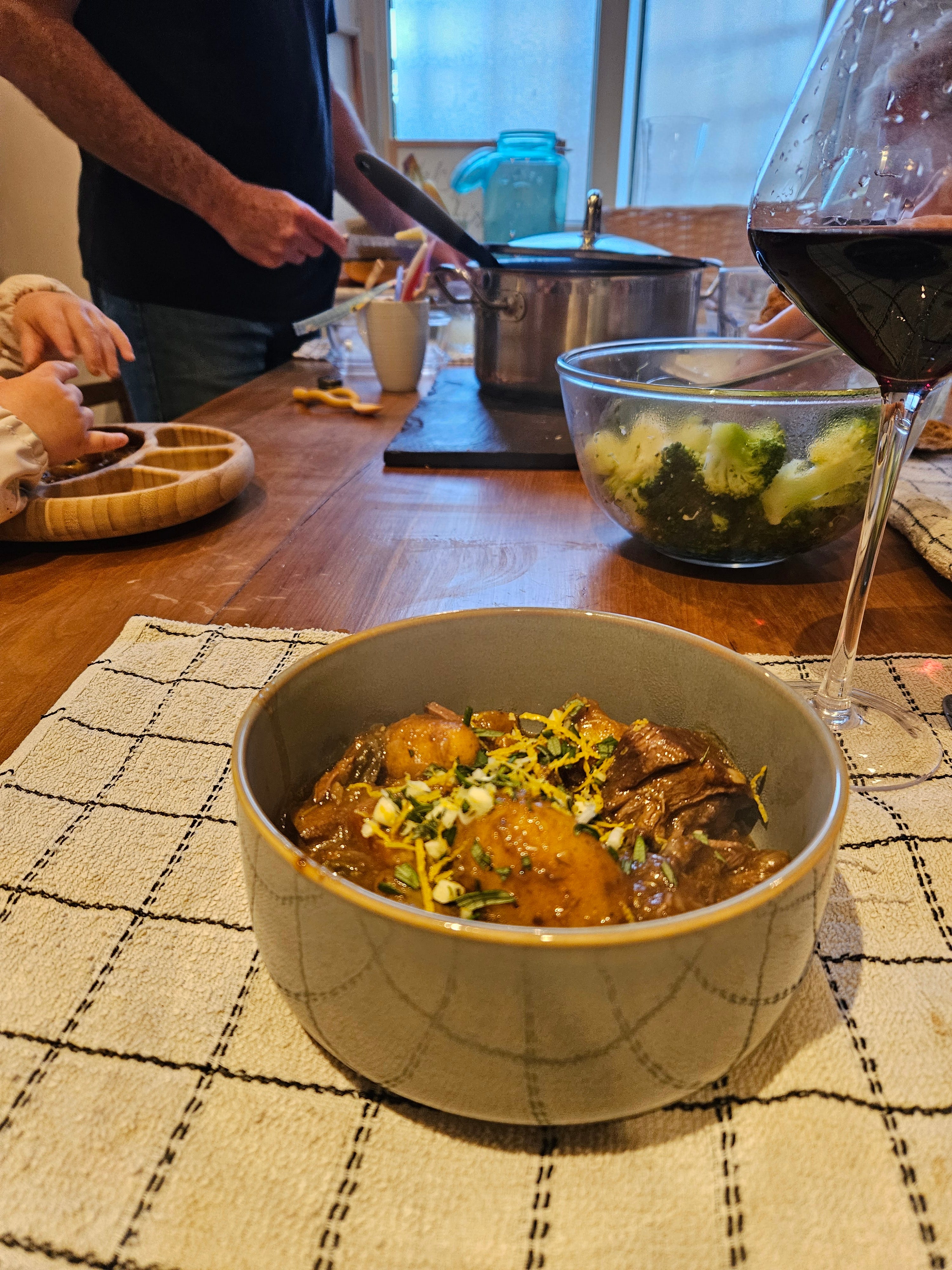 P.s. I made the beef stew last night and it was just as easy as I had thought (and even more delicious). Quick snap below feat. chubby hands and a whole lot of mess.